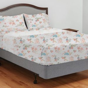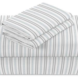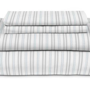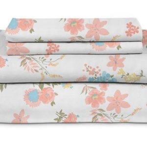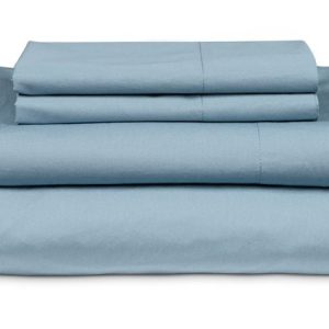 Full Set – 1 flat sheet 90 x 100. 1 fitted sheet 54 x 76 x 17. 2 pillowcases 21 x 34