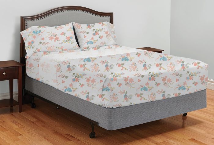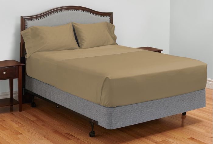 Split King Set – 1 flat sheet 110 x 108. 2 fitted sheets 39 x 80 x 15. 2 pillowcases 21 x 40