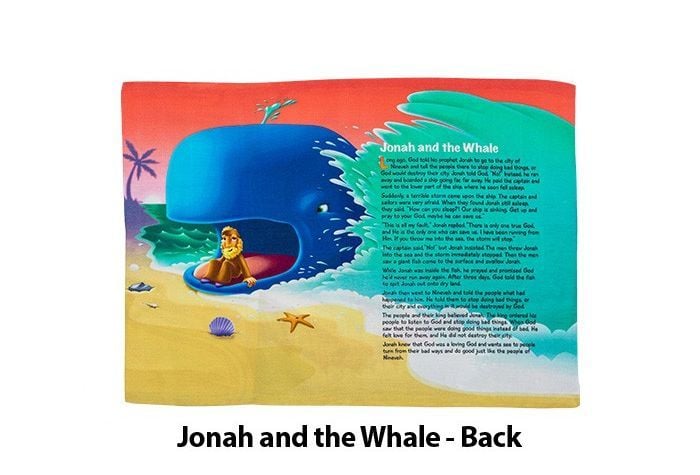 This unique childrens pillowcase (12″ x 18″) combines vibrant childrens bible story imagery (front). and the beloved childrens bible stories (back). that you can enjoy reading to your little one over and over again. Choose your favorite or collect them all! Creation. Daniel and the Lions Den. Jonah and the Whale. Noahs Ark. and the story of Baby Jesus.