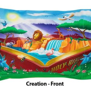 This unique children’s pillowcase (12″ x 18″) combines vibrant children’s bible story imagery (front), and the beloved children’s bible stories (back), that you can enjoy reading to your little one over and over again. Choose your favorite or collect them all! Creation, Daniel and the Lion’s Den, Jonah and the Whale, Noah’s Ark, and the story of Baby Jesus.
