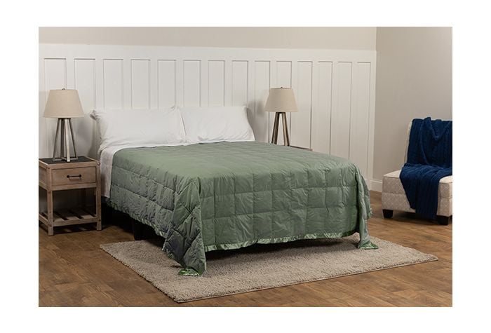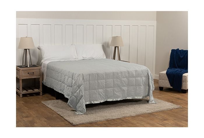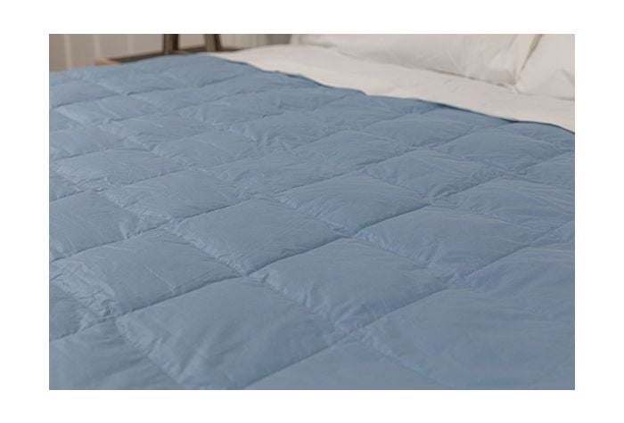 - Baffle Box Construction – Helps reduce cold spots and keeps feathers from moving around the blanket