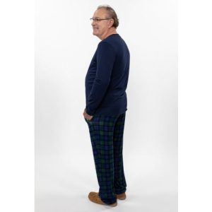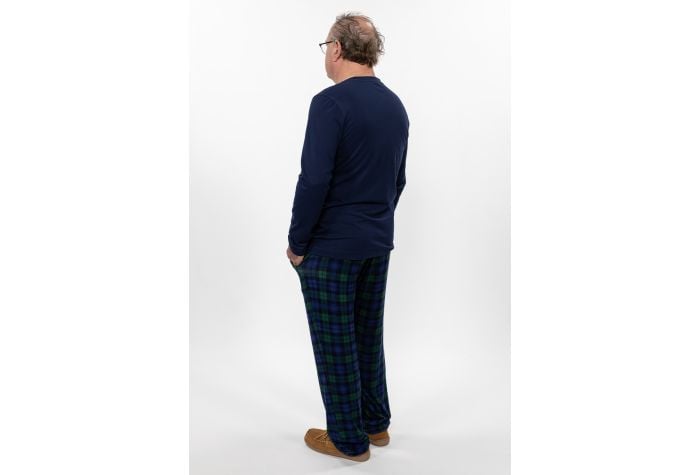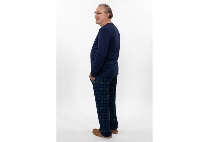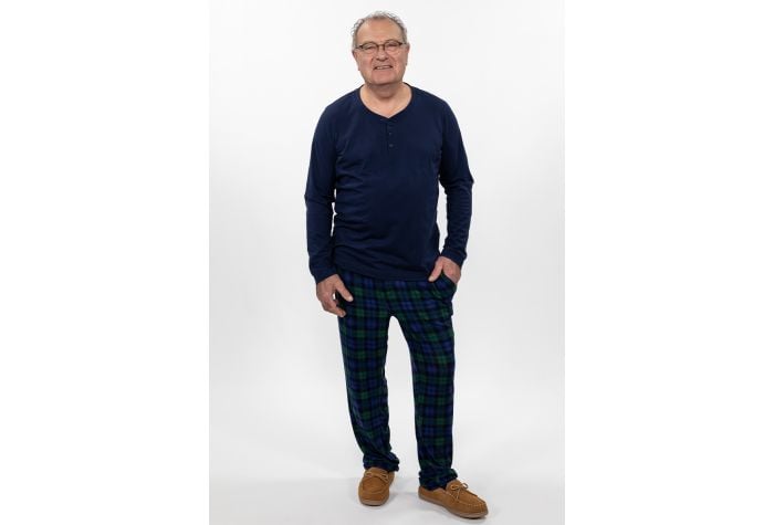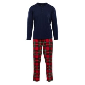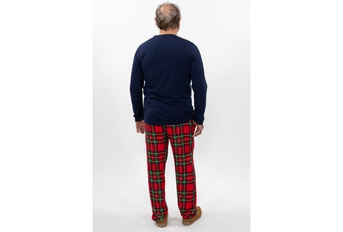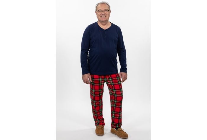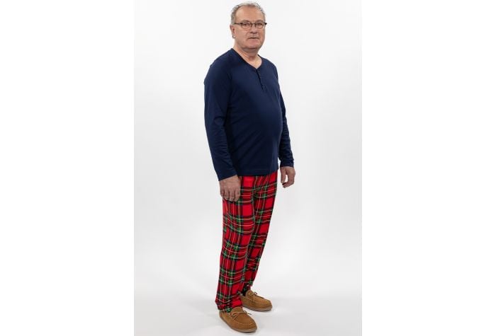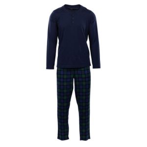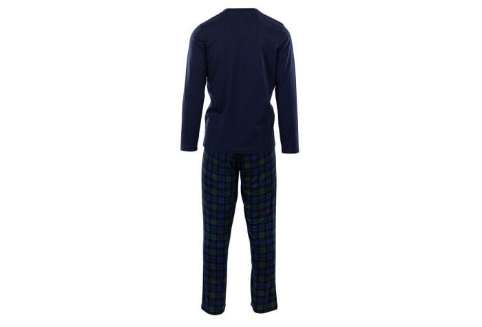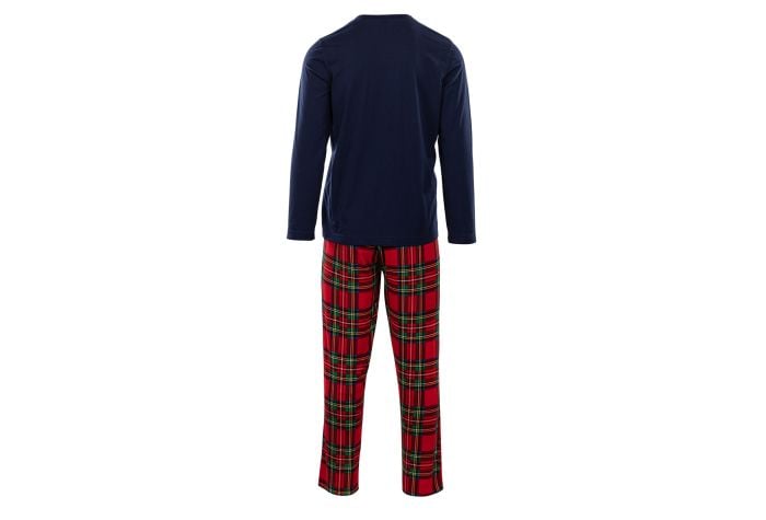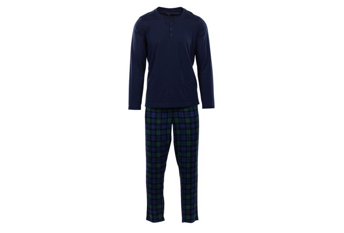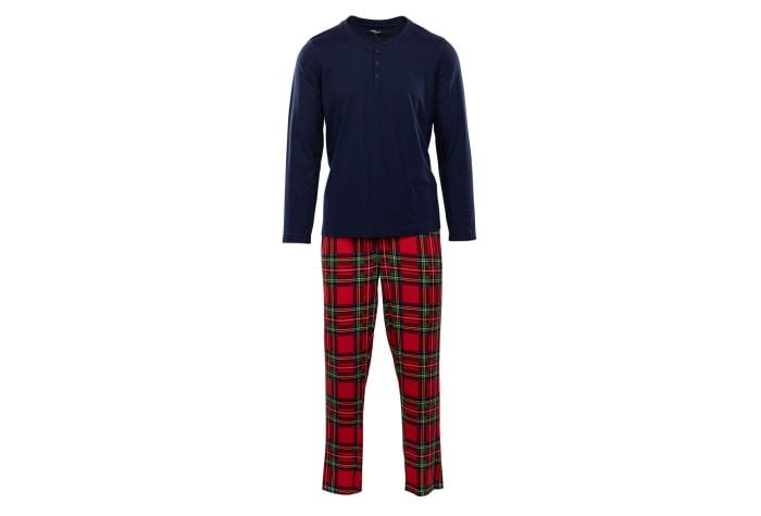 - Men’s 2pc notch collar pajama set comes with a long-sleeve shirt and bottom for a complete and timeless look