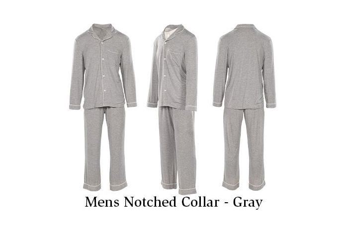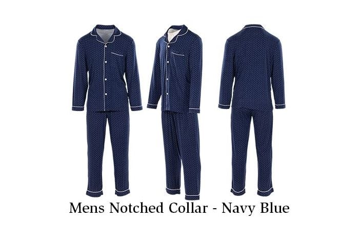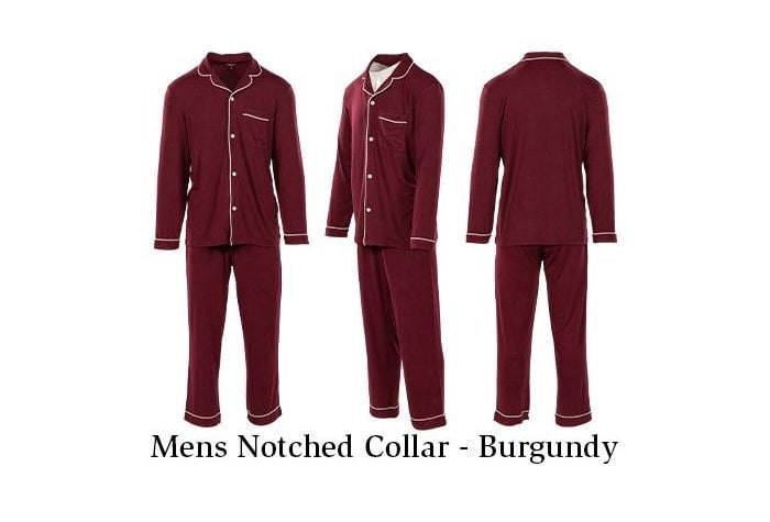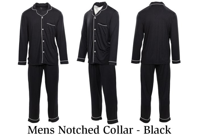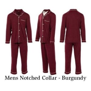 - Men’s 2pc notch collar pajama set comes with a long-sleeve shirt and bottom for a complete and timeless look