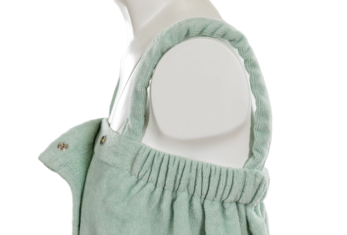 Made of 100% US Upland Cotton. this piece is a cross between a towel and a robe! Great for drying off after your shower or bath and getting ready during your morning routine!