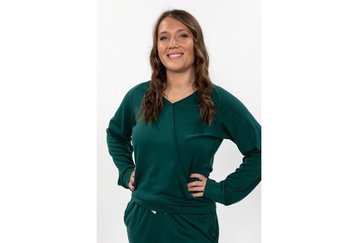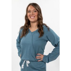 This crossover sleep shirt. with its clean lines and modern styling will make you want it in every color! Made of luxurious cotton. modal and spandex fabric gives it supreme softness. The crossover V-neck front has a clean finished banded hem. Complete the look by purchasing the matching sleep pant.